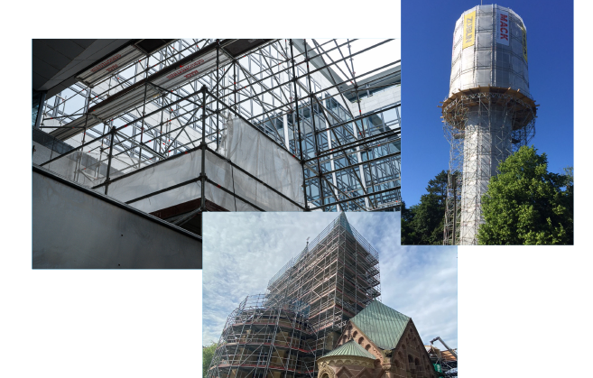 Neben unseren regionalen Aktivitäten bieten wir unsere Leistungen im Sondergerüstbau auch überregional an, insbesondere im süddeutschen Raum.